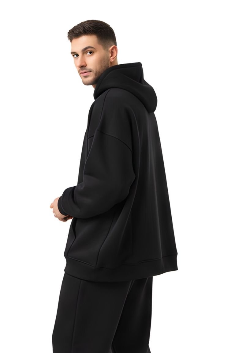 Crafted from premium soft fleece, it provides warmth, durability, and a smooth feel against the skin. The minimalist all-black design makes it easy to style with joggers, denim, or layered streetwear looks — perfect for casual days, travel, or laid-back evenings.