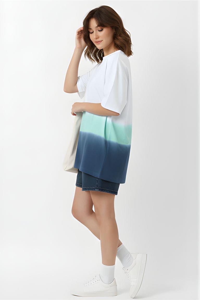 The VASTRNOVA Coastal Fade Tie-Dye Oversized T-Shirt features a smooth dip-dye effect blending crisp white into soothing sea-green and deep ocean blue tones. Designed with a relaxed oversized fit, it delivers an easy, breathable feel that’s perfect for warm days and casual layering.