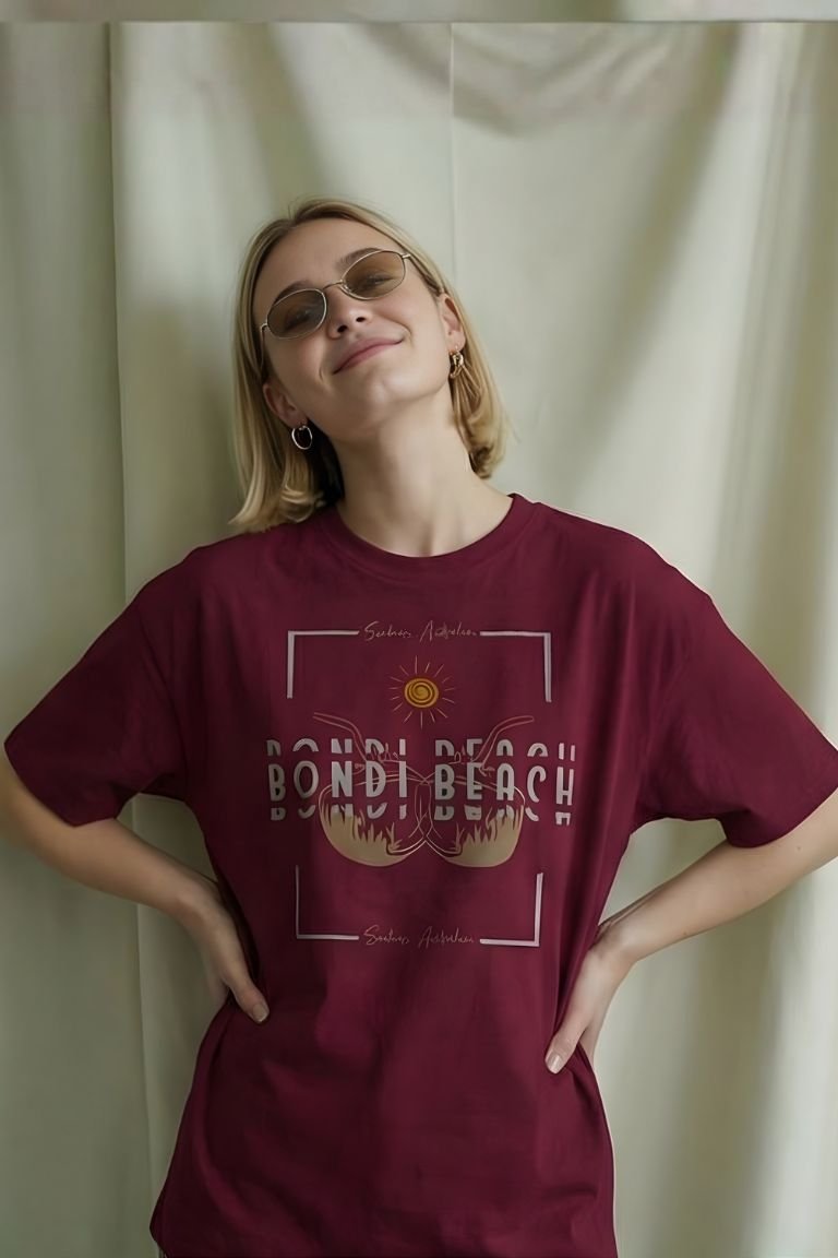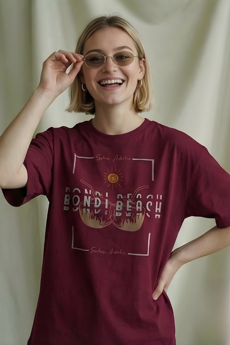 Step into the golden glow of coastal living with the VASTRNOVA “Bondi Beach Sunset” Oversized Tee. Featuring a warm-toned graphic inspired by Australia’s iconic Bondi shoreline, this tee captures the laid-back, sun-soaked spirit of beach life.