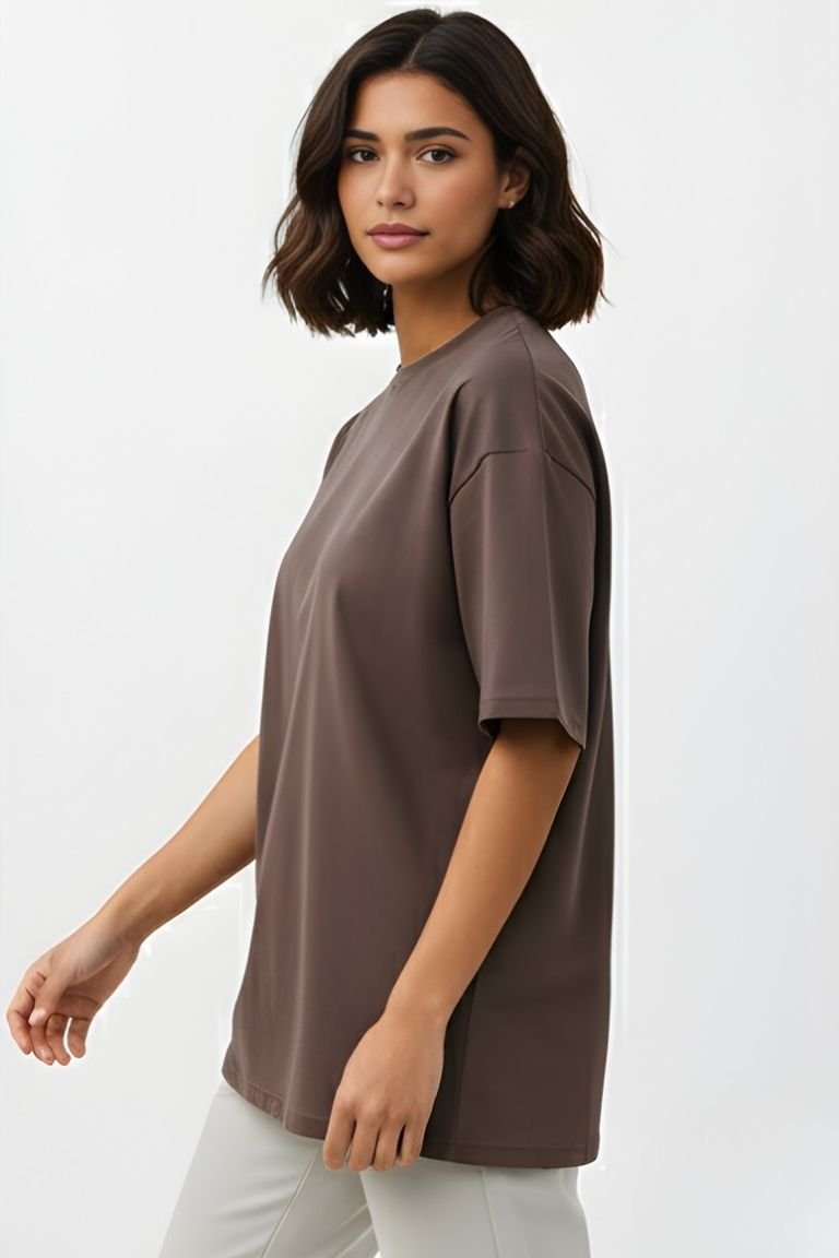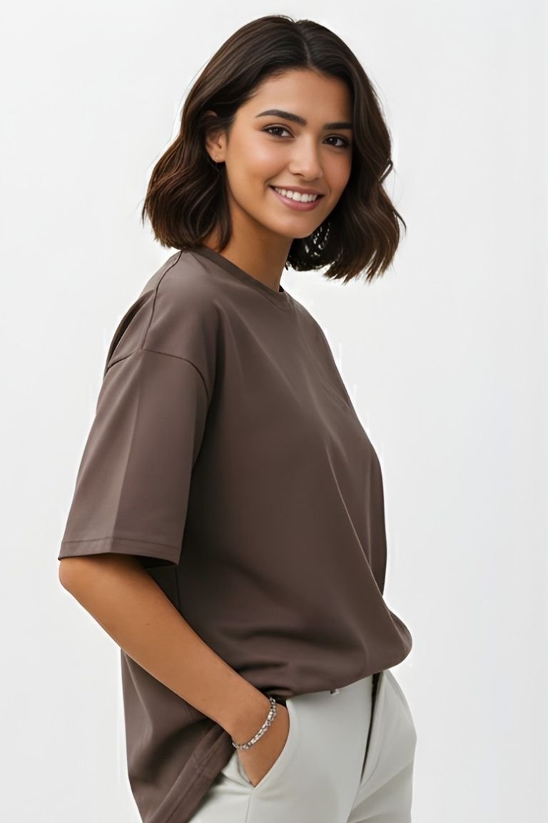 The VASTRNOVA Cocoa Ease Oversized T-Shirt is crafted for those who appreciate clean design and timeless tones. Finished in a rich chocolate-brown hue, this tee brings warmth, depth, and versatility to your everyday wardrobe.