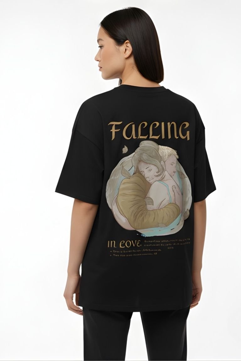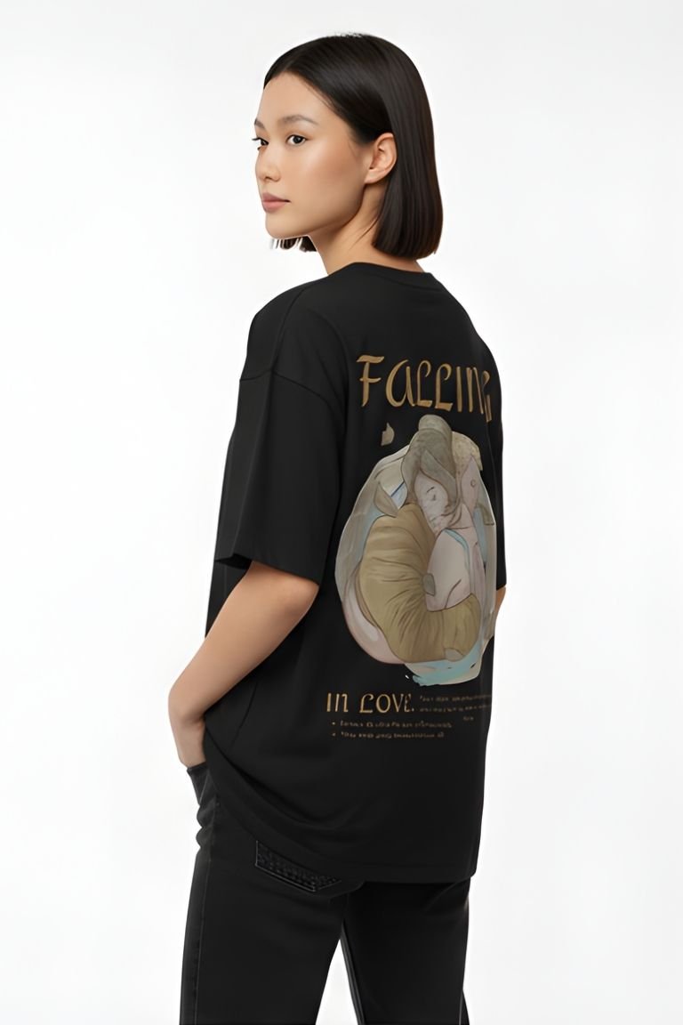 The VASTRNOVA “Falling in Love” Oversized T-Shirt captures that exact emotion with a beautifully illustrated back print that tells a story of comfort, closeness, and connection.