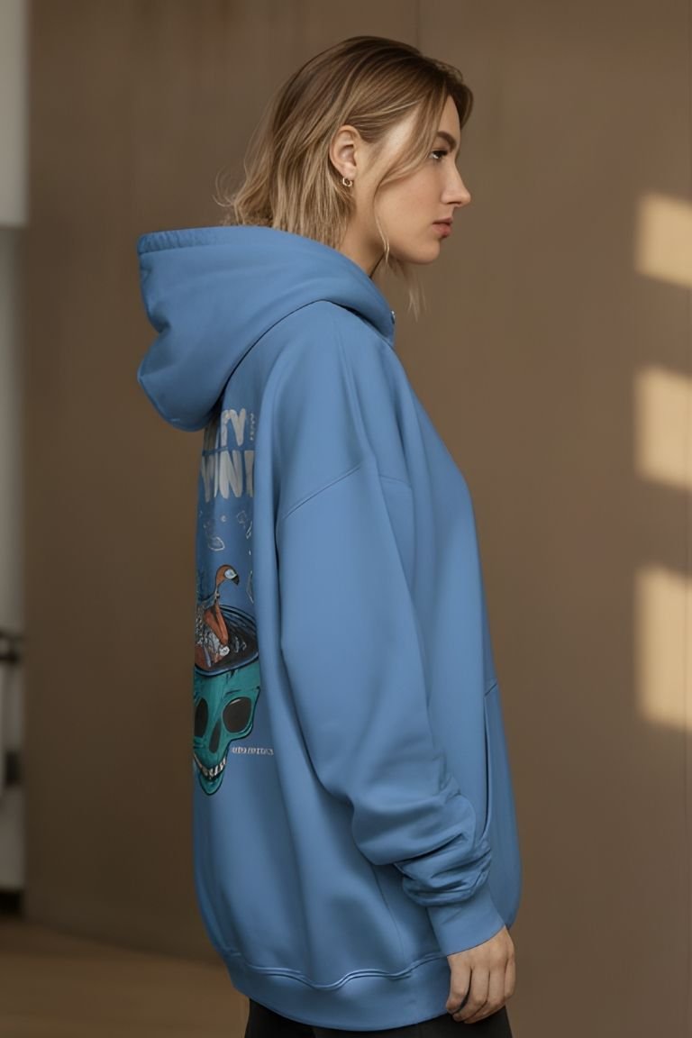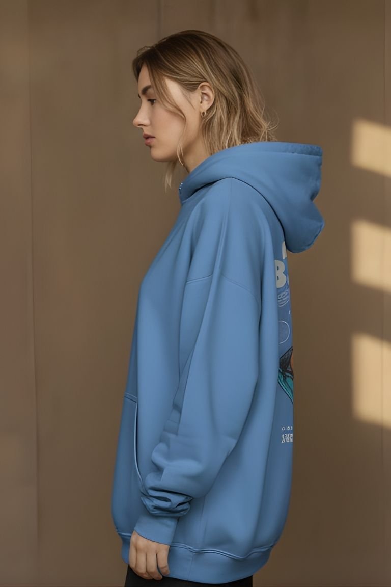 Crafted from ultra-soft, high-quality fabric, it delivers a relaxed oversized fit ideal for both everyday comfort and standout style. The vivid artwork and pastel blue base create a unique aesthetic that blends futuristic storytelling with playful surrealism.