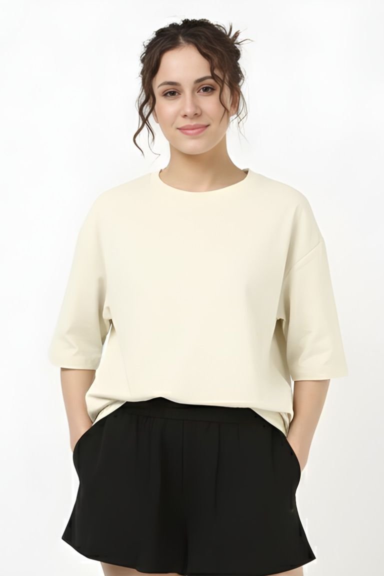Effortlessly chic and endlessly versatile — the VASTRNOVA Soft Ivory Oversized T-Shirt is designed for relaxed comfort with a refined, modern look. Featuring a clean silhouette and soft neutral tone, this tee blends minimal aesthetics with everyday wearability.