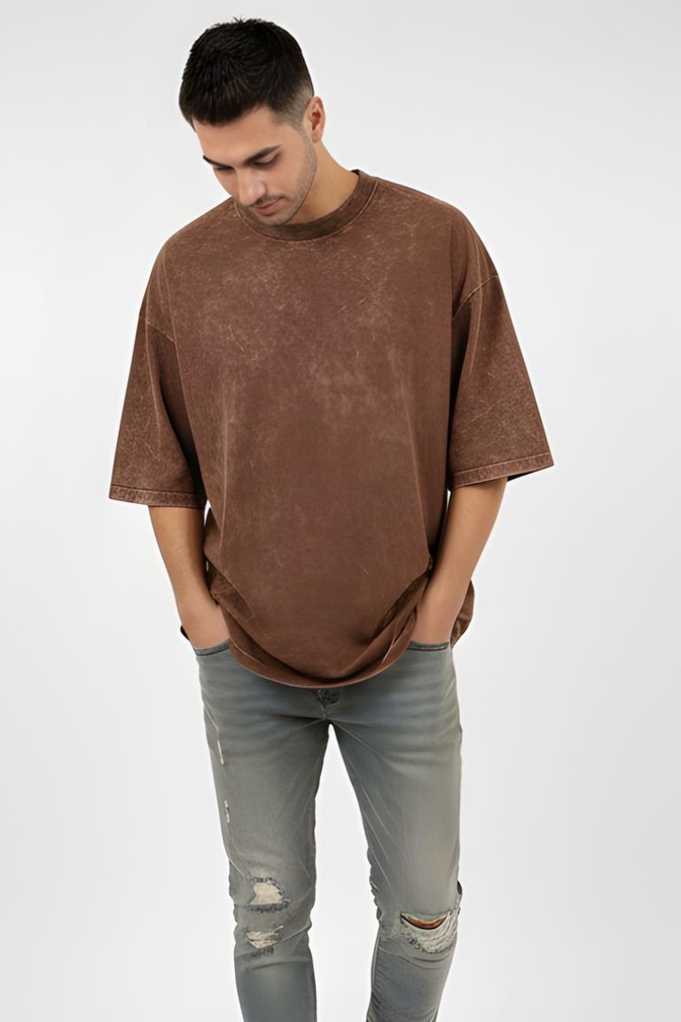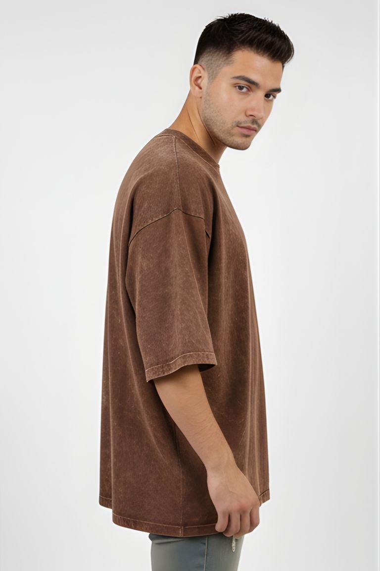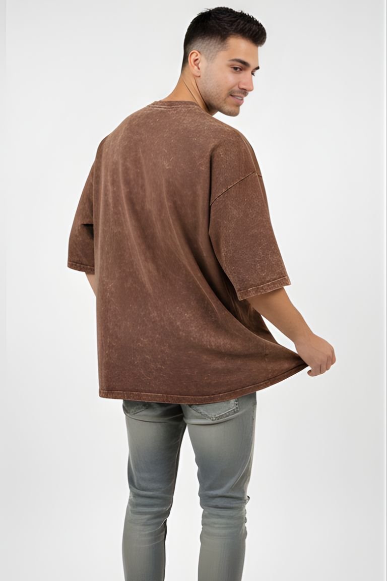 Elevate your streetwear game with the VASTRNOVA Rust Brown Acid Wash Oversized T-Shirt, designed for those who appreciate raw textures and modern silhouettes. Featuring a rich brown base with a naturally faded acid-wash effect, each piece carries a unique, worn-in character.