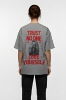 The VASTRNOVA “Trust No One, Love Yourself” Oversized T-Shirt delivers a bold message of independence and self-respect. Featuring a striking red typographic back print with artistic detailing, this tee speaks loud without trying too hard.